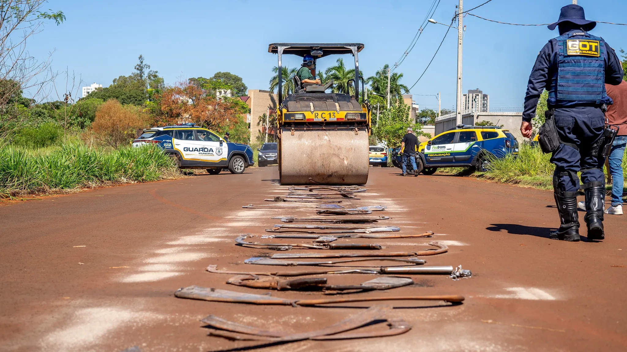 A ação ocorreu próximo a  Avenida Portugal, no Jardim Polo Centro, local escolhido estrategicamente para evitar transtornos ao trânsito. A destruição dos materiais foi feita com o auxílio de um rolo compressor da Secretaria Municipal de Obras.